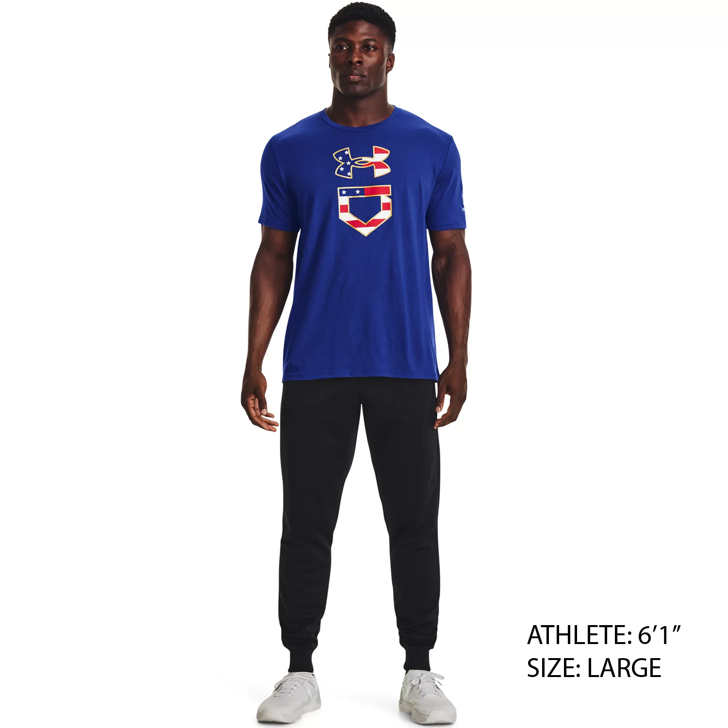 - Logo graphic in red, white and blue on front